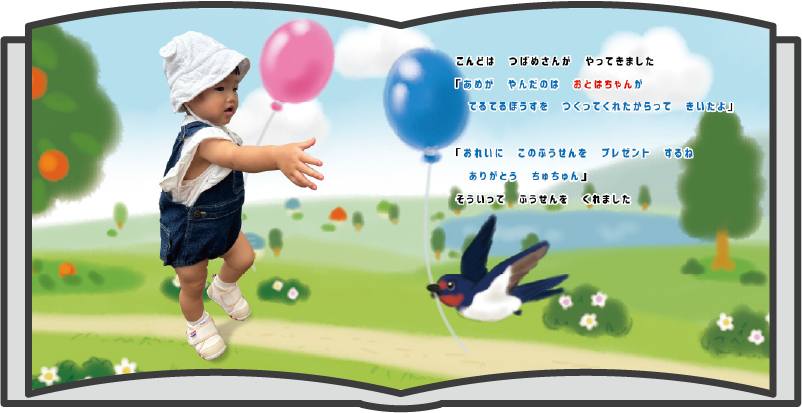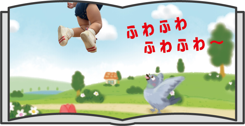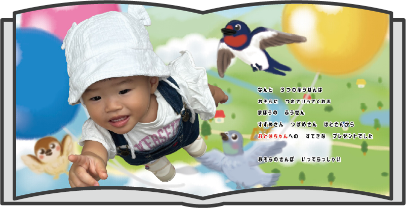 撮影の際は、お子様を上からのアングルで撮影しました。最後のページなので、目いっぱいの笑顔だと最高ですね!