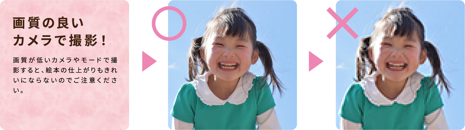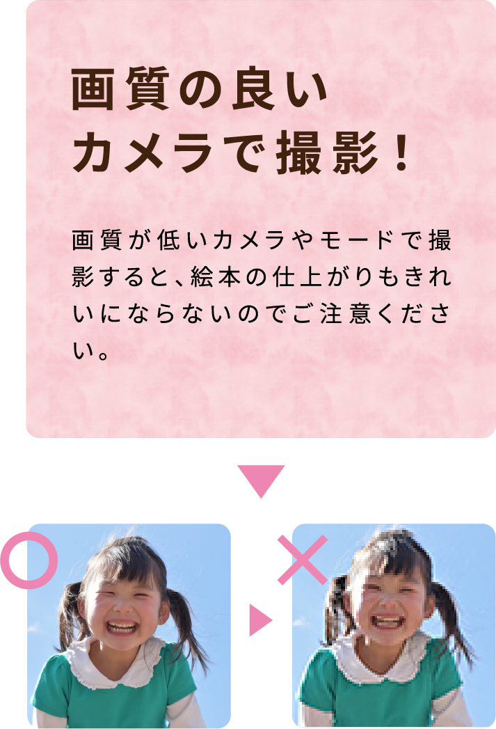 ●解像度の低いカメラで撮影すると、印刷時に粗い写真になってしまいますのでご注意ください。