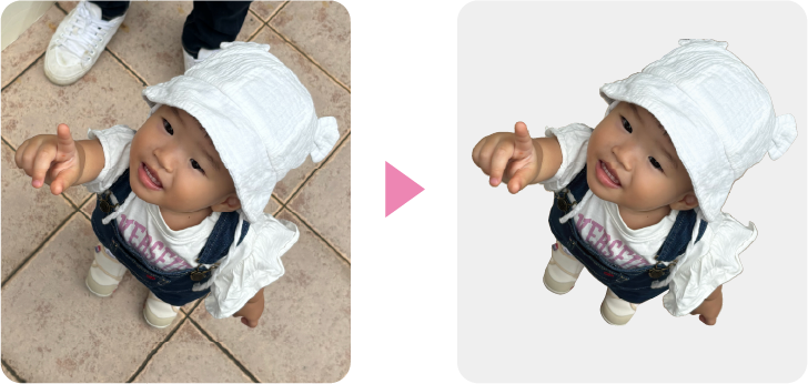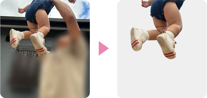 撮影の際は、お子様を「たかい、たかい」状態でやや下からのアングルで撮影しました。 ※撮影する際はお子様の安全を十分に確保したうえで行ってください。
