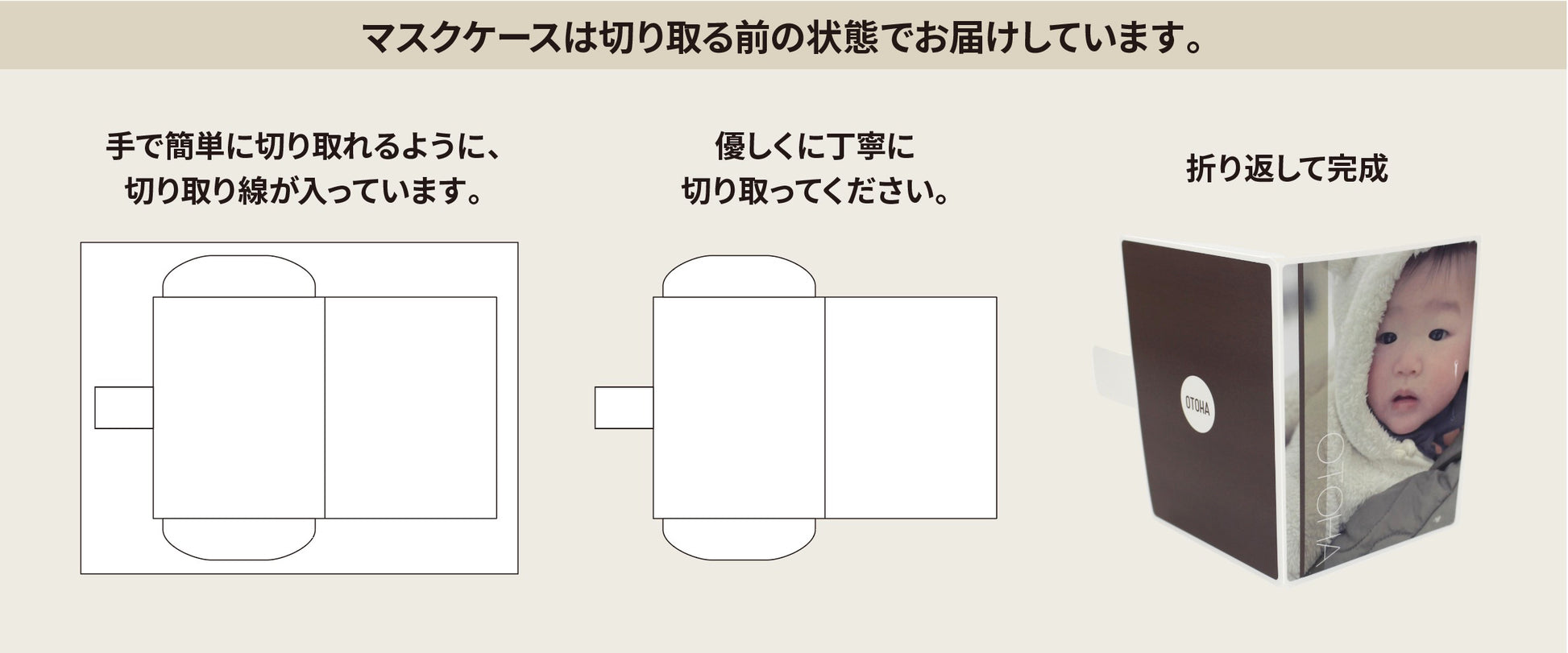 【制作上の注意】●ローマ字、カタカナ、漢字など、マスクケースに記載したい名前を記入してください。(書体は選べません、特殊な文字も対応できません) ●文字の長さ被写体の位置によって、名前を入れる位置や文字の大きさは変わります。 ●写真のトリミング、名前をいれる位置などすべてデザイナーが行います。指示はできません。●文字の間違い(綴りの間違い・漢字の間違い)などはそのまま印刷されますので十分ご注意ください。やり直しは出来ません。●名前記載欄に記入がない場合は、マスクケースにも記載されず作成されます。名前の記載が不要な場合は、空欄でご注文ください。●解像度の低いカメラで撮影すると、印刷時に粗い写真になってしまいますのでご注意ください。 ●色ムラ、印刷筋が入る場合があります。※写真はイメージです。